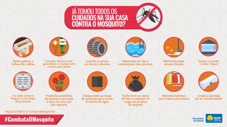 Outro ponto fundamental para a população ficar atenta é com os recipientes utilizados para plantas em casas ou apartamentos, seja em varandas, jardins ou mesmo em espaços fechados. O Lago Norte é a Região Administrativa que melhor demonstra essa situação: mesmo com o período da seca, a situação de infestação pelo Aedes aegypti foi classificada como de alerta pelo local, com larvas do mosquito tendo sido encontradas em cerca de 2,08% das residências visitadas.