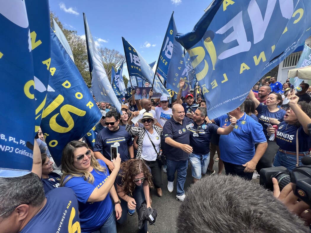 O governador do Distrito Federal Ibaneis Rocha (MDB) esteve, neste sábado (20), no Bar do Amigão, na quadra 506 da Asa Sul, ao lado de amigos e a apoiadores para realizar grande adesivaço de carros.