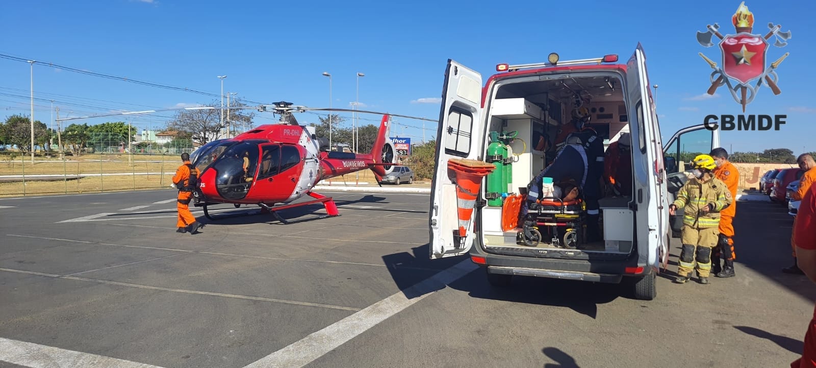 No local, informa o CBMDF, o menor, que foi levado ao Hospital de Base, foi “imobilizado conforme protocolo de trauma, estabilizado e entubado pela equipe médica do transporte aéreo”.