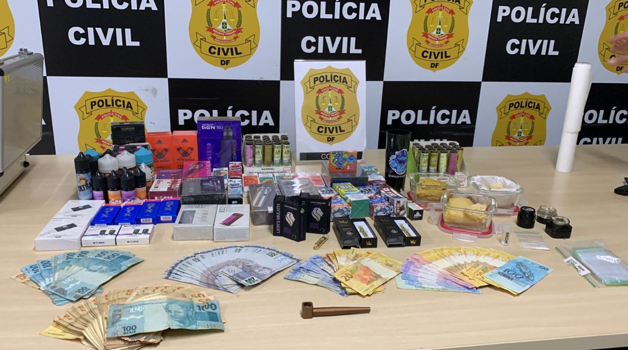 A tabacaria e a residência do traficante ficam em Taguatinga, Distrito Federal. Nas buscas, foram localizadas resinas de maconha, com valor estimado do grama em R$200,00 (duzentos reais), porções de cocaína, cigarro eletrônico com cannabis, dezenove mil seiscentos e trinta e nove reais e outros instrumentos de comercialização dos produtos.