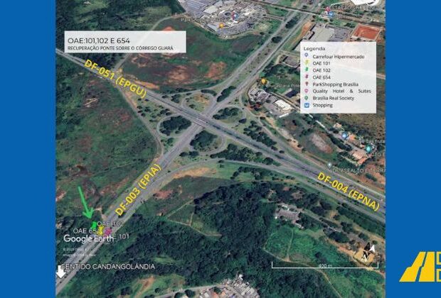 A mesma intervenção já foi realizada, anteriormente, na 1ª ponte à esquerda, no sentido Gama – ParkShopping.