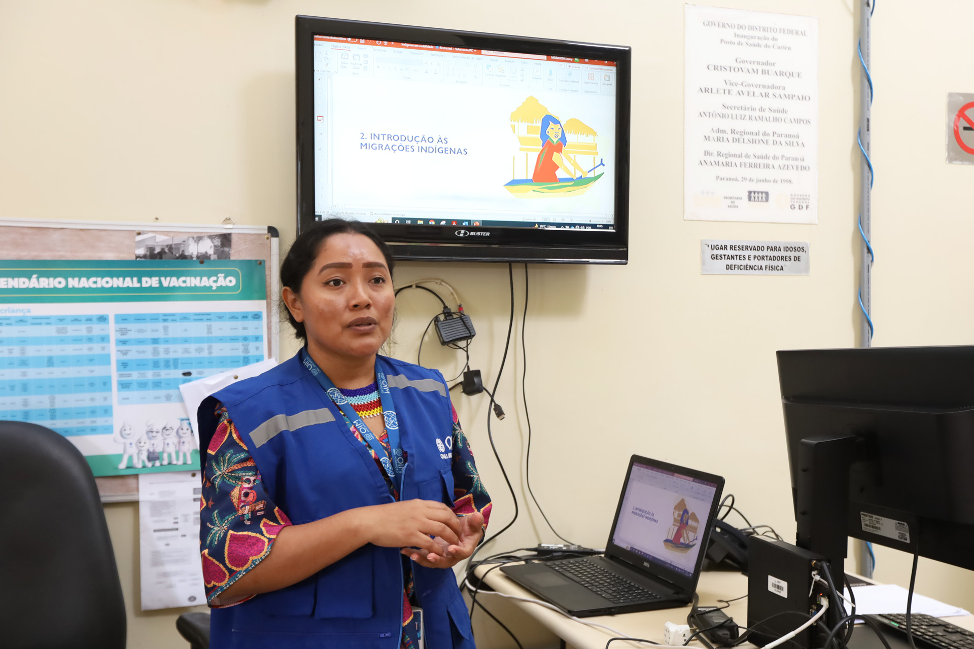 Durante o evento, a convite da Organização Internacional para as Migrações (OIM) no Distrito Federal, Leany Torres Moraleda, da etnia Warao e assistente de projeto da entidade, informou sobre a cultura, o histórico de mobilidade, a forma de reorganização e a temática sobre saúde e medicina nesses grupos.