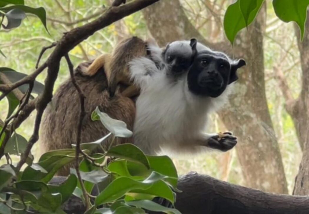 Nasceram no Zoológico de Brasília, no início deste mês, dois filhotes de sauim-de-coleira (Saguinus bicolor), espécie considerada criticamente ameaçada de extinção pelo Ministério do Meio Ambiente (MMA). Ainda não se sabe qual é o sexo, pois eles estão sob os cuidados dos pais desde o nascimento, como é comum entre os primatas. Os técnicos da Fundação Jardim Zoológico de Brasília (FJZB) acompanham a rotina e os cuidados da família.