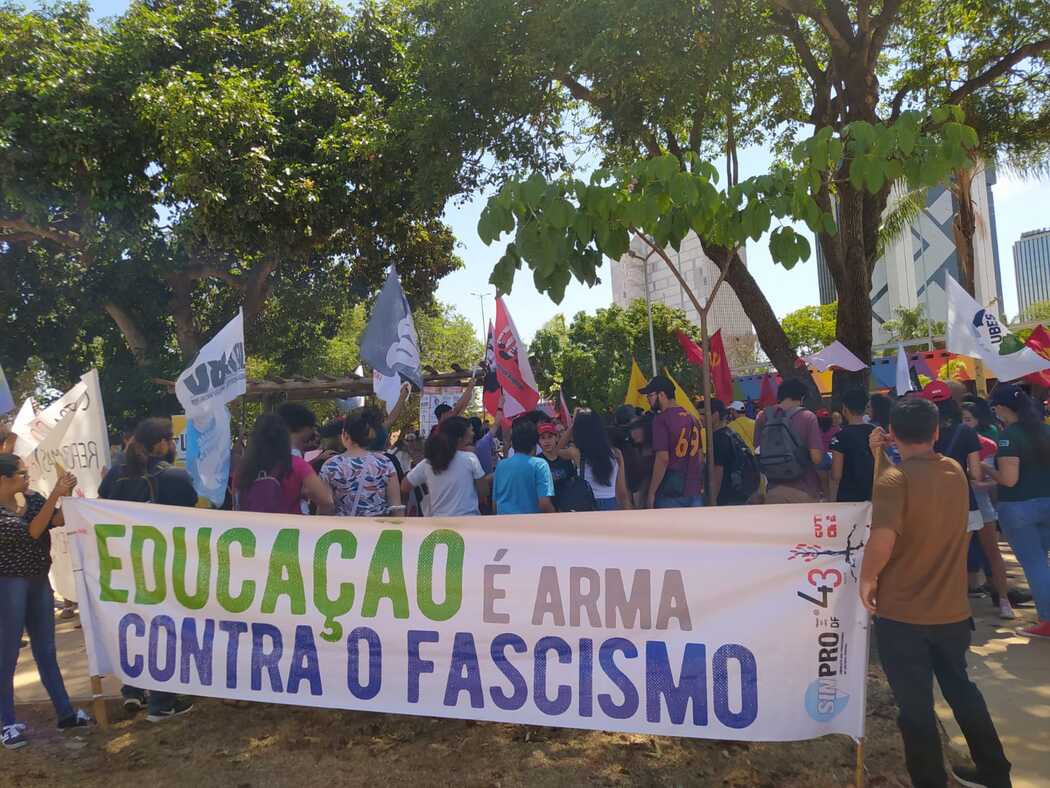 Como forma de se opor às ameaças de bloqueios orçamentários por parte do Governo Federal, estudantes e professores realizam uma manifestação em prol da “defesa” das universidades e institutos federais. O ato começou por volta das 9h desta terça-feira (18), na Galeria dos Estados, e terminou no fim da manhã após uma caminhada empreendida até o Museu Nacional e o Ministério da Educação (MEC).