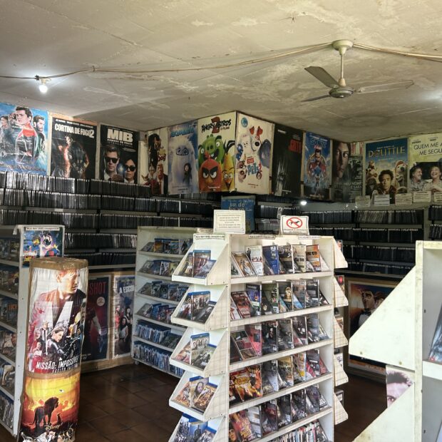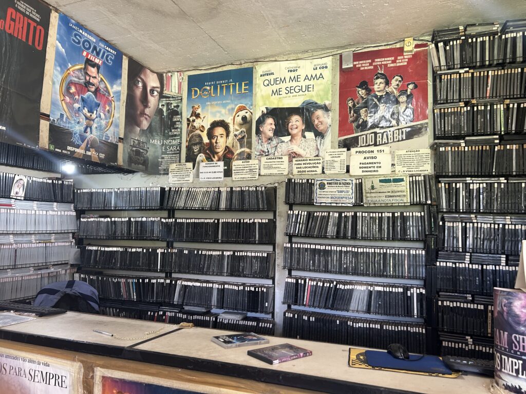 Carlos está no ramo de locação de filmes há 31 anos, e começou a vender quando era só VHS. “Essa é uma das primeiras locadoras do Cruzeiro”. Carlos lembra que no auge das locadoras de vídeo, abriu a blockbuster, e depois ele abriu a loja dele. Depois veio a TV a cabo, e o comerciante considera que deu uma boa caída, mas depois as locadoras voltaram com tudo, e foi levando desde então. Ele achou que na pandemia o movimento fosse aumentar, e então, caiu ainda mais. “Mas eu fui aguentando, e passou a pandemia, melhorou um pouco, e estou aqui até hoje”.