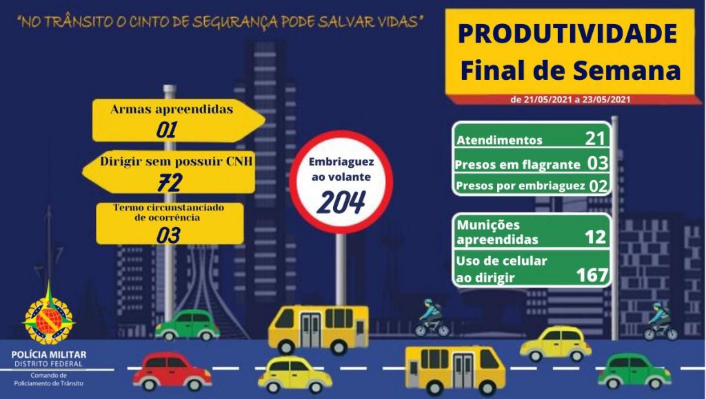 Fora as autuações, as operações de fiscalização no DF prenderam 3 pessoas em flagrante. Duas prisões por por embriaguez ao volante e outra por porte ilegal de arma de fogo e munições.
