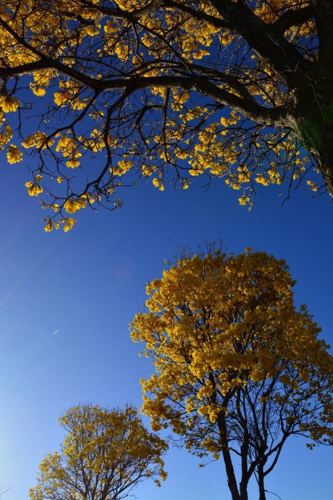 Há quase cem dias sem chuvas e em meio ao cenário seco nesta época do ano, os famosos tons de amarelo dos Ipês começam a enfeitar Brasília nesta semana. Durante a pandemia do novo coronavírus, as árvores não recebem em seus caules tantos admiradores como outrora, mas alguns, mesmo no cenário de isolamento social, conseguem aproveitar a vista das flores características da árvore.