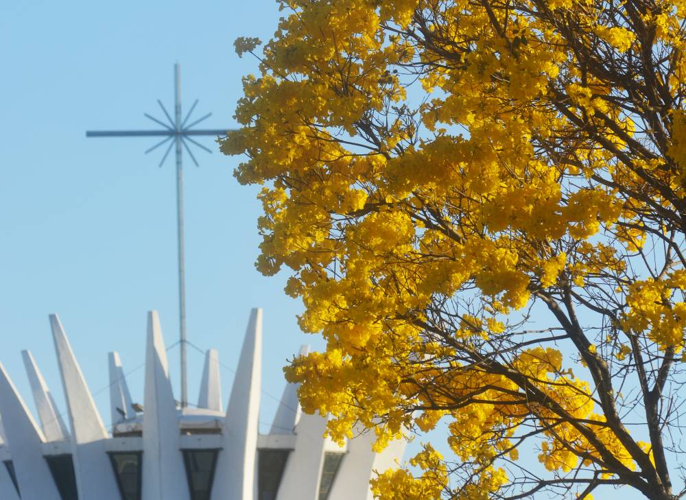 As cores contrastantes entre o branco da Catedral, o marrom da grama seca e o azul do céu limpo, sem nuvens chamam a atenção de fotógrafos da capital, que aproveitaram para ampliar a galeria de fotos com o esplendor das flores amarelas na cidade. Isaque Oliveira Nascimento, 26, e Clevson Cordeiro, 41, tiveram as agendas canceladas pela falta de eventos sociais mas entenderam que as câmeras não poderiam ficar paradas.