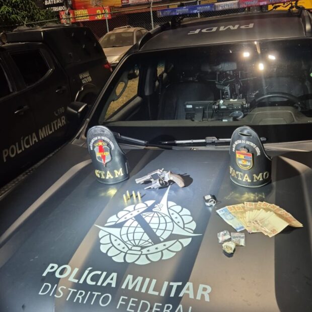 A Polícia Militar do Distrito Federal (PMDF) prendeu, na noite desta quarta-feira (11), um homem foragido da Justiça e com antecedentes criminais por roubo, suspeito de envolvimento em um assalto ocorrido no dia anterior em Taguatinga.