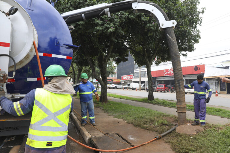 Bastou uma tarde para que as equipes da Novacap pudessem desobstruir mil metros de galerias. A atuação, em tempo recorde, só foi possível graças ao reforço de 16 caminhões-pipa adaptados com sistemas para sucção e hidrojateamento de resíduos.