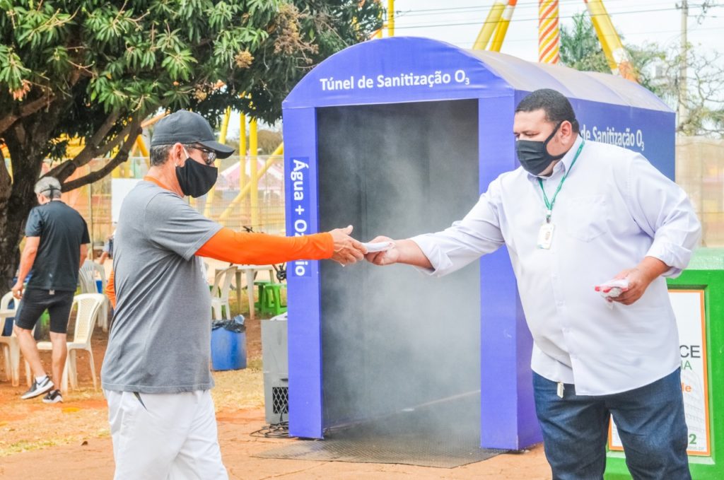 Além da distribuição de máscaras, os frequentadores tiveram acesso ao Túnel de Sanitização instalado ao lado das pistas de caminhada e bicicleta. O equipamento foi montado para promover a limpeza com produtos não tóxicos.