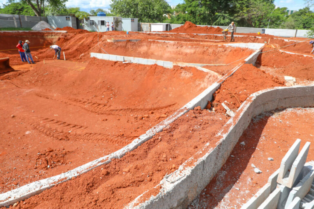 “Teremos duas pistas cercadas por calçamento apropriado para as manobras de skate park, tudo feito em concreto polido”, detalha o encarregado da obra, Fábio Arruda. “A menor, com 198 m² e 90 cm de profundidade, poderá ser usada por crianças e iniciantes no esporte. A maior terá 584 m², com profundidade que varia de 1,30 m a 2,5 m.”