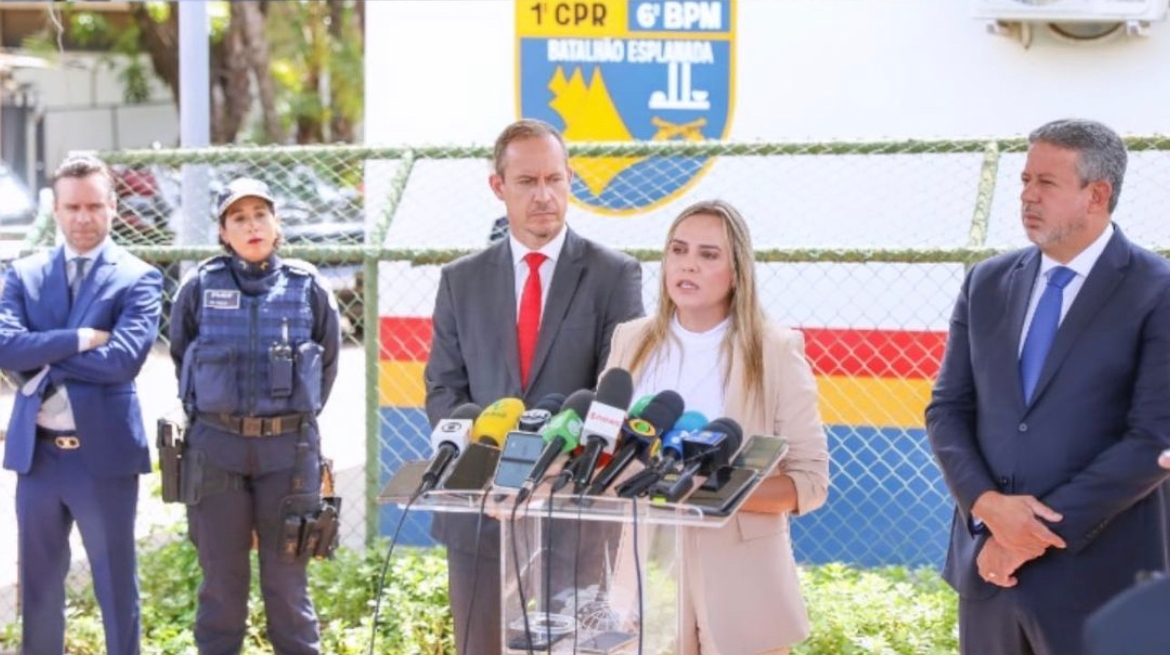 Na manhã desta segunda-feira (16), Celina Leão, governadora em exercício do Distrito Federal, participou de reunião com Ricardo Cappeli, interventor federal, e Arthur Lira, presidente da Câmara dos Deputados, e falou sobre a criação de um novo batalhão de segurança dos poderes da República.