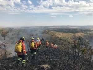 O fogo só foi controlado às 17h40, devido a grande área, os ventos no local e o terreno de deslocamento muito dificil.