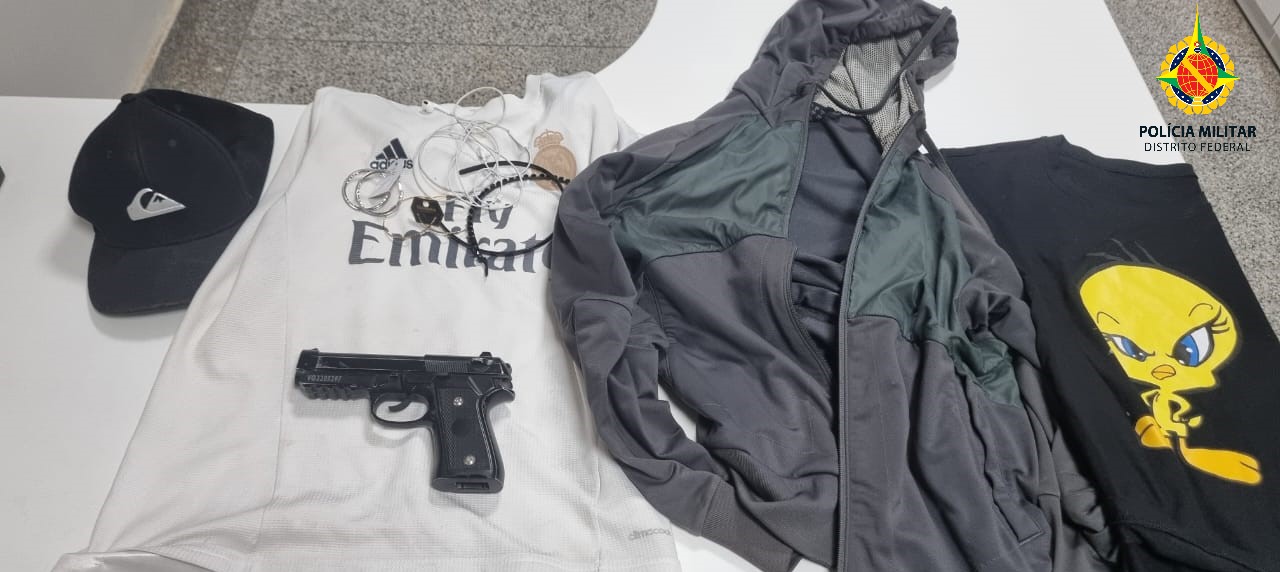 Durante a fuga, eles dispensaram os objetos roubados, que foram apreendidos pela polícia, além de uma arma de fogo.