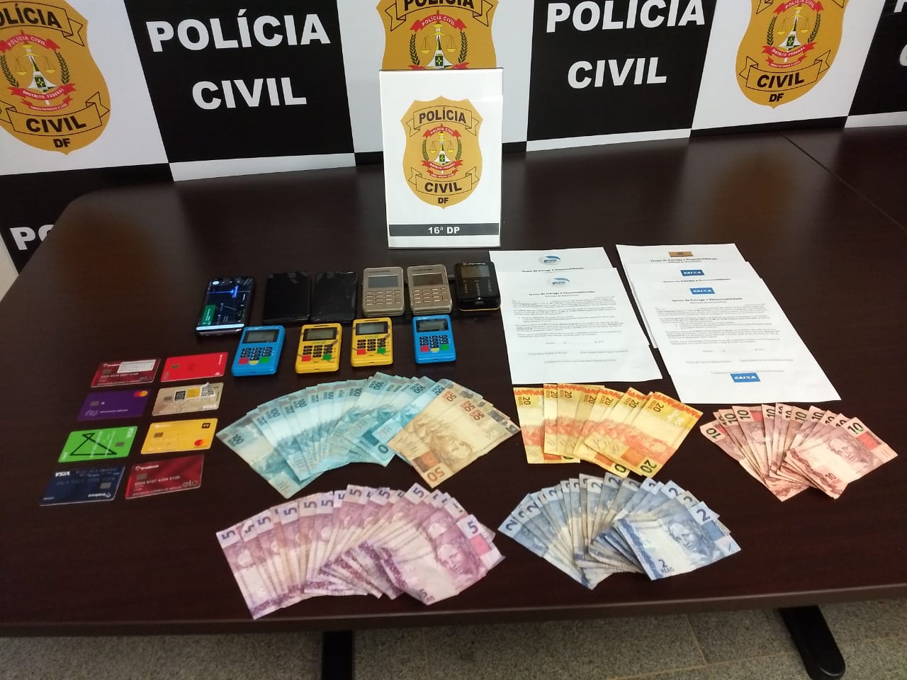 Durante as buscas nas casas dos suspeitos, foram encontrados objetos oriundos de furtos e roubos, como celulares, cartões e dinheiro em espécie. Também foram encontradas máquinas de cartão.