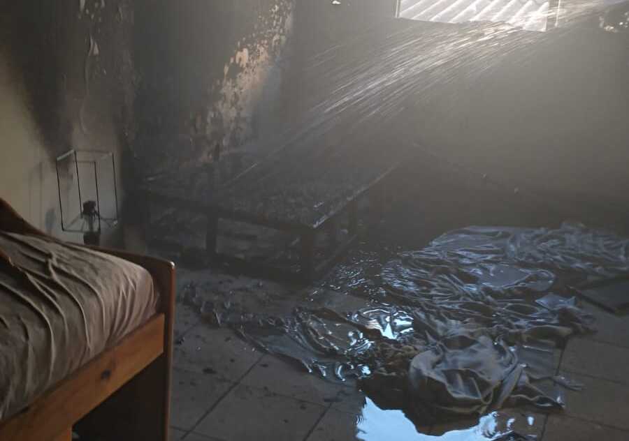 Após o controle das chamas, foi realizado a ventilação do ambiente para retirada de fumaça e o rescaldo.
