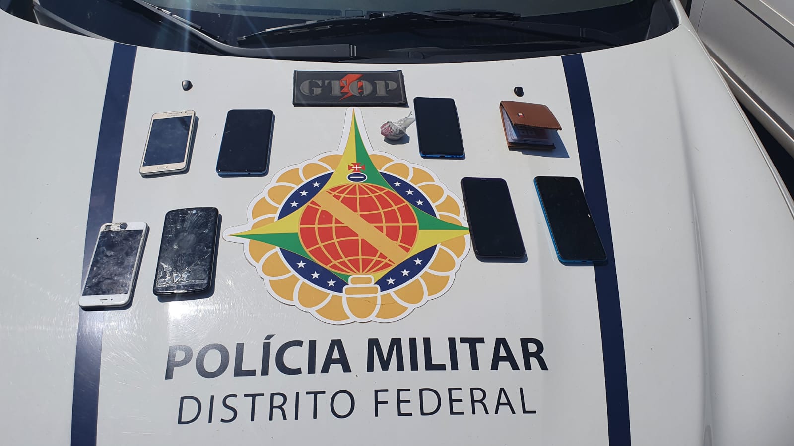 Um dos manifestantes acionou policiais no local e disse ter visto o suspeito cometendo um furto. Militares o abordaram e encontraram com ele sete celulares.