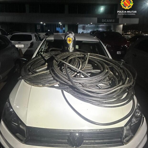 A abordagem ocorreu por volta das 22h15, quando o suspeito foi flagrado transportando fios de cobre provenientes de um furto registrado na Cidade Estrutural. Diante da situação, ele foi detido em flagrante.