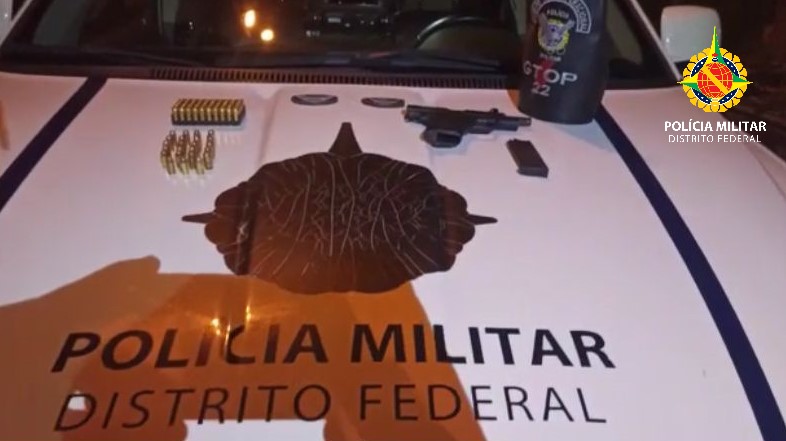 A Polícia Militar do Distrito Federal prendeu um homem por porte ilegal de arma de fogo, após abordagem no conjunto E da QSC 19, em Taguatinga, por volta das 21h deste domingo (3).