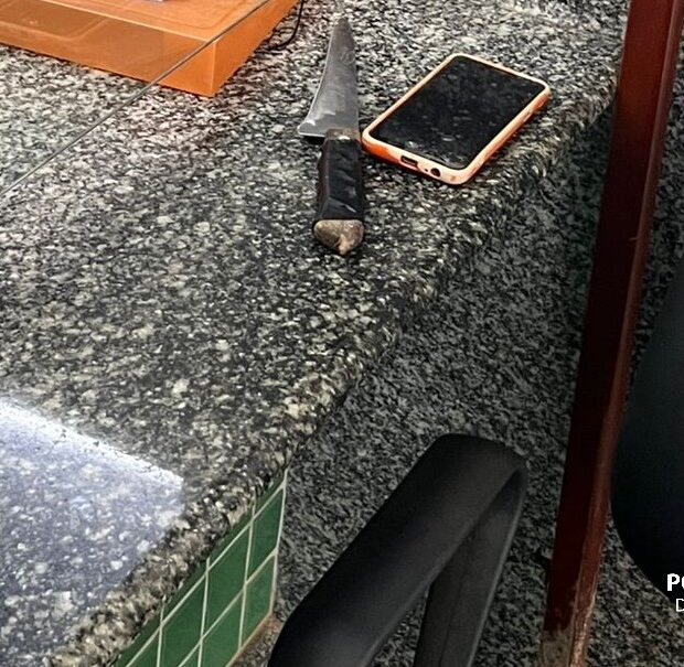 Suspeito atacou vizinho com objeto perfurante e ameaçou a vítima com faca; mandado por receptação foi cumprido