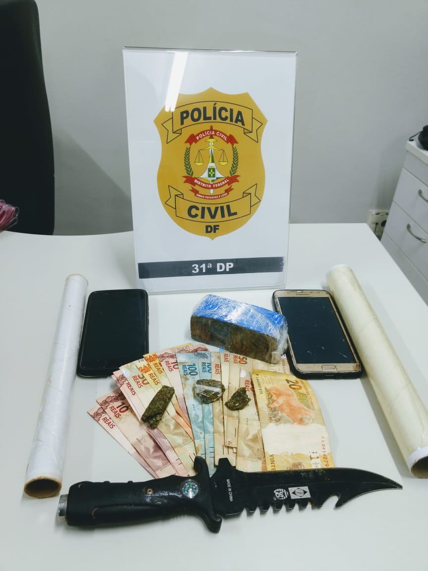 Após a finalização da buscas na residência do acusado, a polícia localizou outras porções da droga, inclusive uma em formato de barra, além de R$ 760 em dinheiro e apetrechos para o fracionamento do entorpecente. Diante da situação, o acusado também foi autuado em flagrante pelo crime de tráfico de drogas.