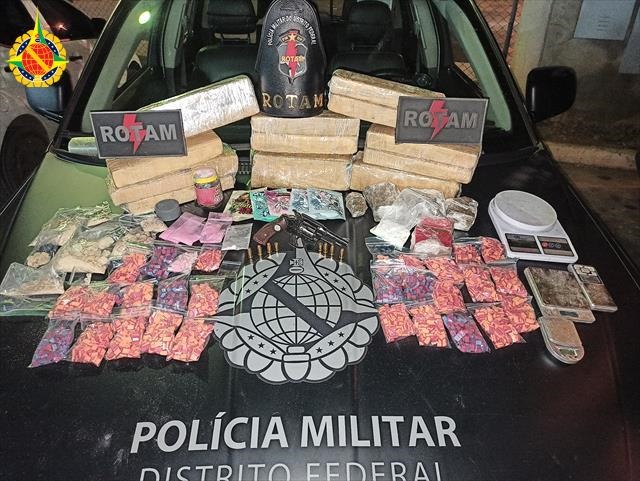 No local, foram encontrados diversos itens ilícitos. Entre eles, um revólver calibre 32 com seis munições, sendo duas deflagradas e seis intactas. Além disso, foram apreendidos aproximadamente 12kg de maconha, 500 gramas de droga sintética MDMA, 2734 comprimidos de Ecstasy, cinco embalagens de “jujuba de noia” (doce de goma contendo droga) e quatro balanças de precisão.