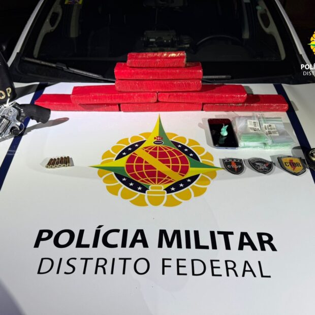 Durante a abordagem, os policiais encontraram com o suspeito oito tabletes de maconha, uma motocicleta que, segundo a PMDF, era usada para a distribuição dos entorpecentes, além de um simulacro de revólver e um aparelho celular.