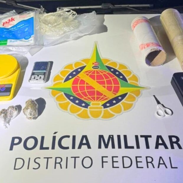A ação foi realizada por equipes do 20º Batalhão da Polícia Militar do Distrito Federal, com atuação do grupo tático GTM 40. Durante a abordagem, os policiais encontraram três porções de maconha, duas balanças de precisão, uma seladora a vácuo, além de rolos de papel filme e diversas embalagens plásticas, materiais geralmente utilizados no preparo e na distribuição de drogas.