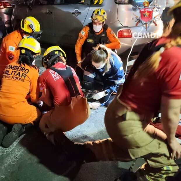Inicialmente, o chamado ao CBMDF foi registrado como uma colisão entre veículos. No entanto, ao chegarem ao local e abordarem a vítima — que já havia sido retirada do interior do automóvel por populares —, as equipes constataram que se tratava de uma parada cardiorrespiratória.