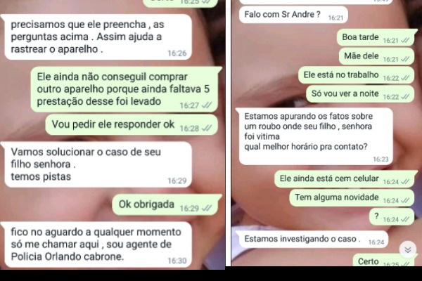 Segundo as investigações, o autor assaltava pessoas e tomava os celulares delas. Depois, entrava em contato com as vítimas por e-mail fingindo ser policial civil, dizendo que precisava de dados pessoais para recuperar os aparelhos. Veja exemplos da ação criminosa: