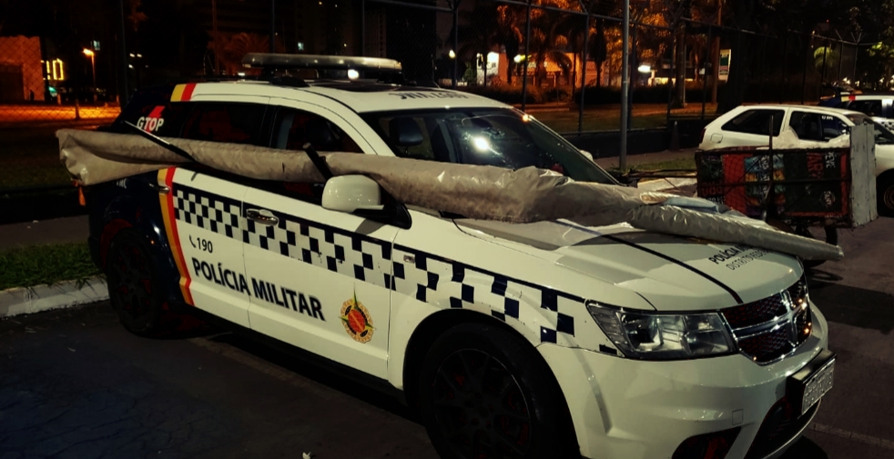 O autor furtou um toldo e uma extensão com lâmpada de um estabelecimento comercial e foi abordado próximo ao local do ocorrido.