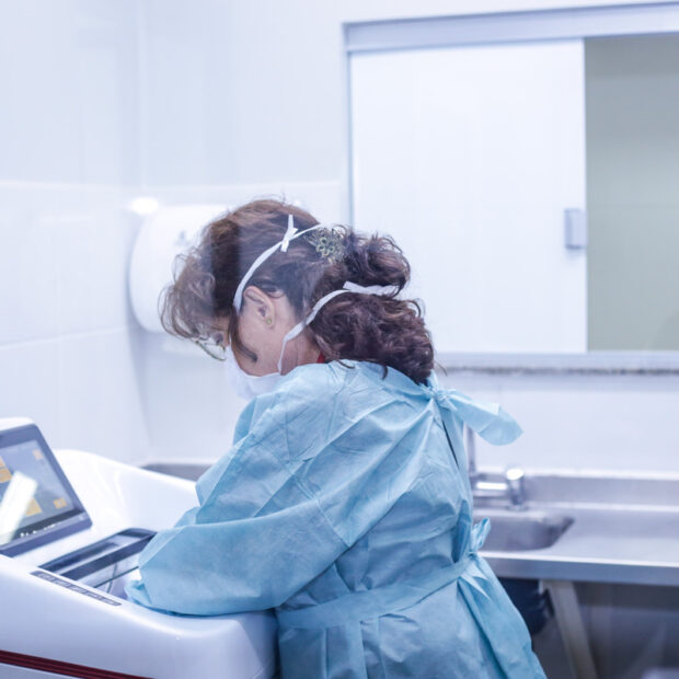 “Uma das cirurgias mais comuns com uso do criostato é a de câncer de mama, quando é feita a avaliação do linfonodo. Dependendo do laudo, muda completamente a conduta do tratamento, inclusive da quimioterapia”, exemplifica o patologista Emanuel Adelino, lotado no HRT.