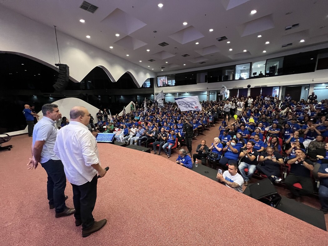 Durante discurso, o candidato à reeleição falou dos investimentos feitos na cidade durante seu mandato, que é a primeira com iluminação 100% em LED, e lembrou da reforma do Cruzeiro Center, um pedido antigo dos moradores.