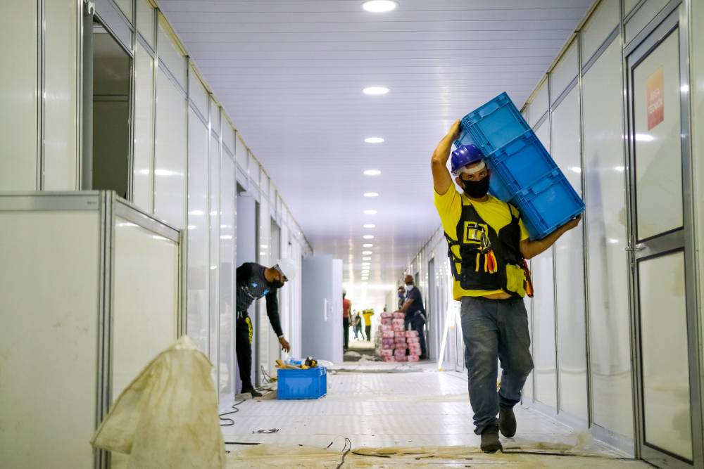 “Em relação às empresas que vão gerir a parte de equipamentos e de pessoal também foi feita a licitação pela Secretaria de Saúde e, na segunda-feira (12), deve ter a homologação. Nós pretendemos abrir essas 300 unidades de UTI no prazo mais curto possível e esperamos, assim, atender a demanda da nossa sociedade”, disse ele, após a vistoria das obras.