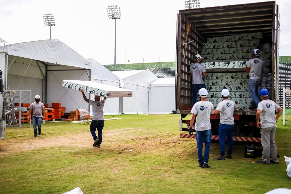 A empresa responsável pelos serviços é a DMDL Montagens de Stands Ltda., vencedora do pregão eletrônico da Companhia Urbanizadora da Nova Capital (Novacap) por R$ 6.597.500. A unidade contará com 100 leitos, assim como a de Ceilândia e a do Gama. Todas elas estão com a previsão de entrega das estruturas para 15 de abril. Em seguida, a empresa que vencer a licitação feita pela Secretaria de Saúde vai administrar as estruturas por 180 dias.