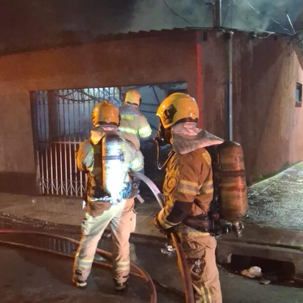 A ocorrência foi registrada por volta das 3h51, na quadra 07, conjunto B. Ao chegarem ao endereço, os bombeiros encontraram o imóvel tomado por fumaça intensa e chamas no interior.