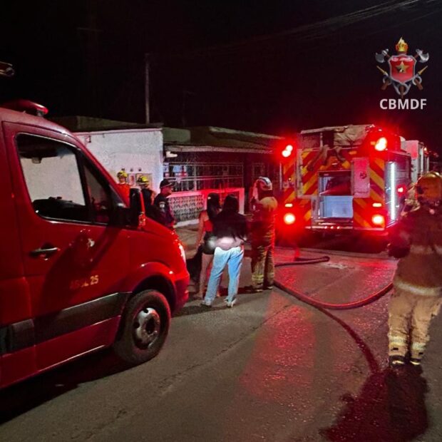 Um incêndio em uma residência na Quadra 28 do Setor Leste do Gama, no Distrito Federal, mobilizou quatro viaturas do Corpo de Bombeiros Militar do DF (CBMDF) na noite deste sábado (8).