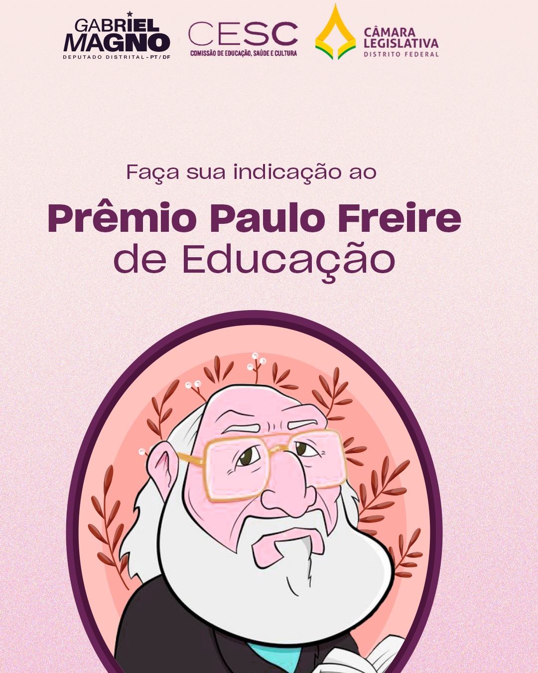 As inscrições para o 1º Prêmio Paulo Freire de Educação, lançado pela Câmara Legislativa do DF, serão encerradas no próximo dia 15. O objetivo da premiação é reconhecer publicamente e oficialmente, por meio da Comissão de Educação, Saúde e Cultura (Cesc), profissionais de ensino, estudantes, estudiosos e ativistas que se destacaram por suas contribuições na promoção do direito à Educação, na gestão democrática, no Plano Distrital de Educação e em projetos políticos-pedagógicos que influenciem de forma positiva as escolas públicas do DF.