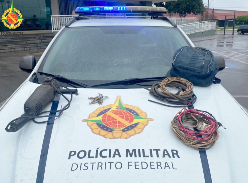 Segundo a corporação, uma equipe de policiais realizava patrulhamento na área, quando perceberam o jovem se escondendo em uma marquise de um prédio. Ele segurava uma sacola transparente com diversos objetos.