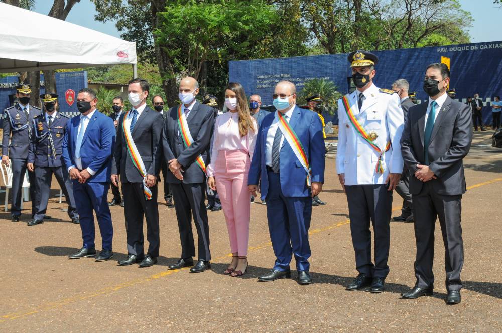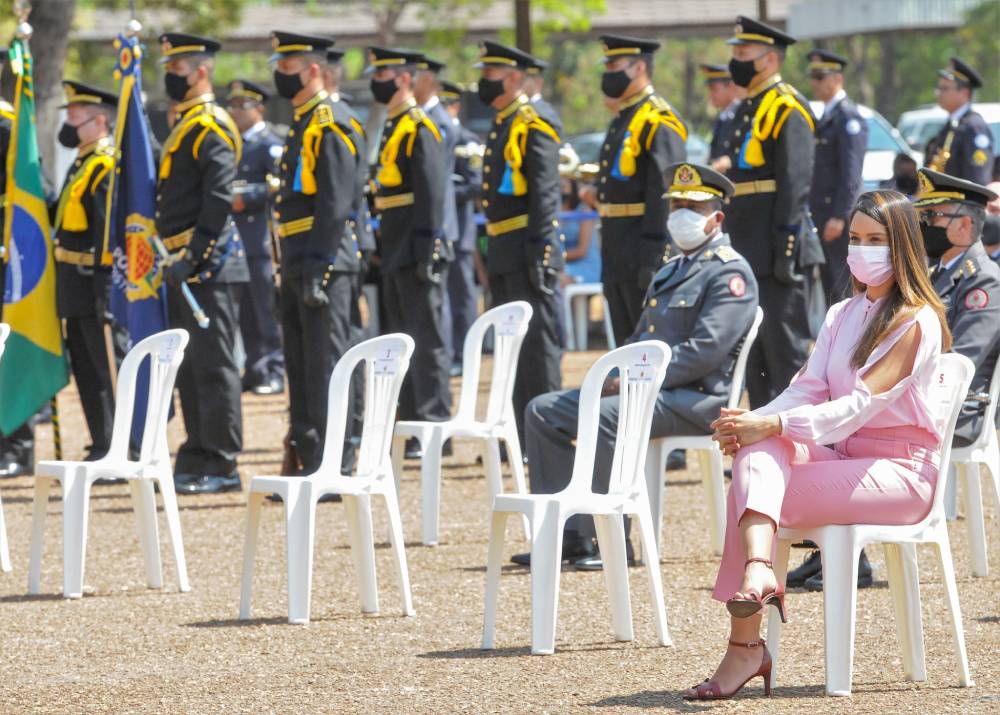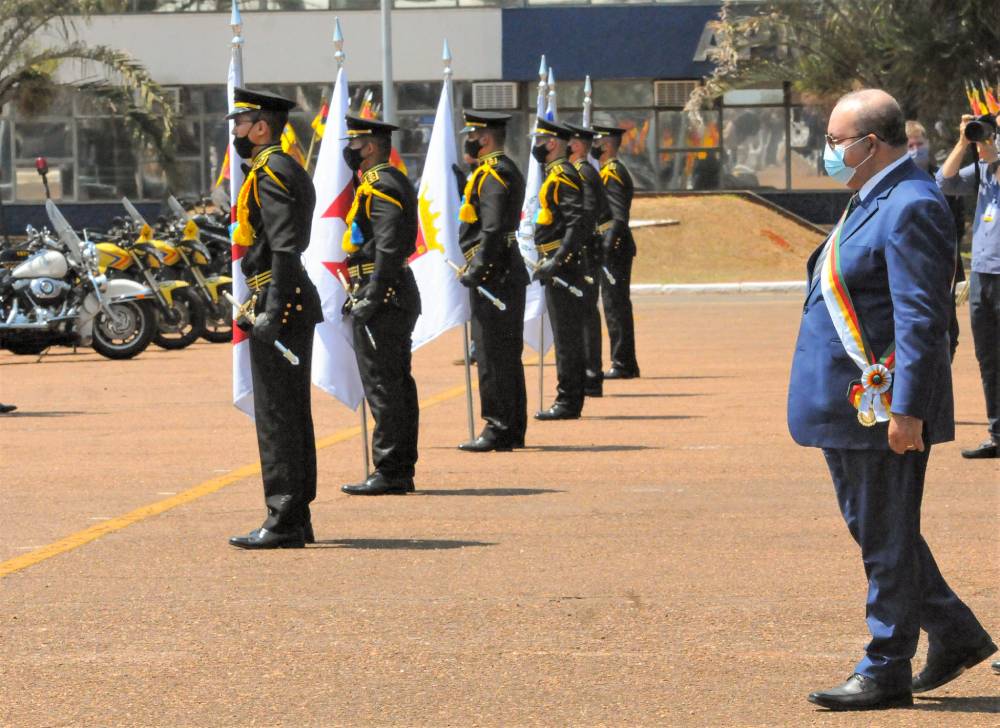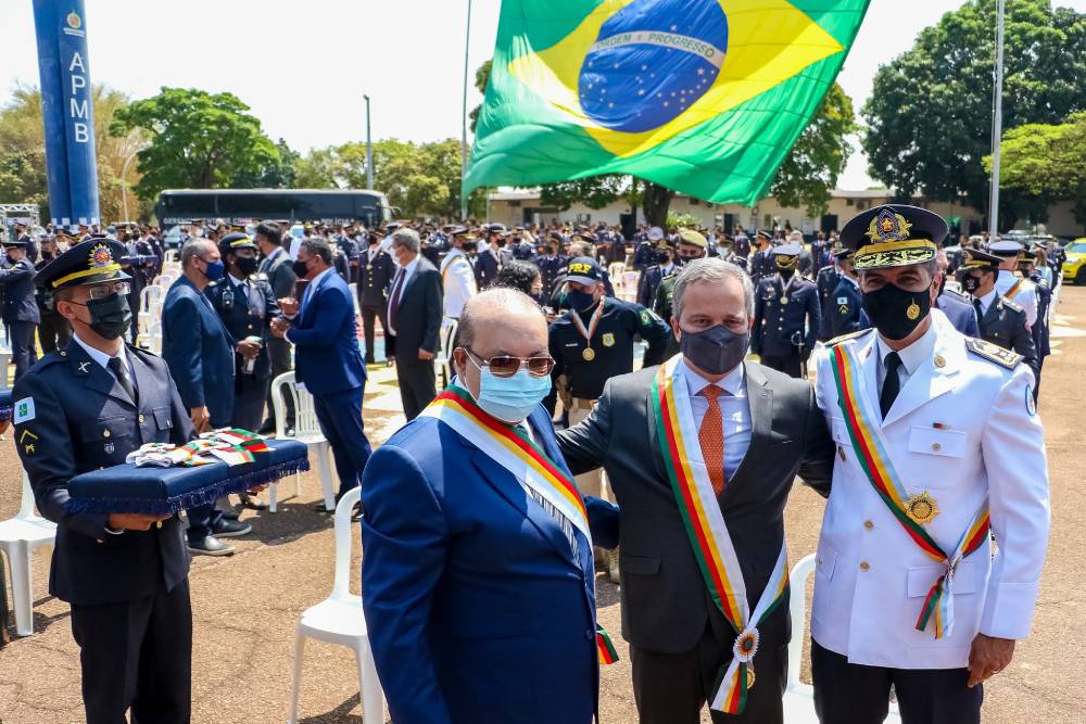 Sob um sol inclemente e forte calor, o governador do Distrito Federal, Ibaneis Rocha, participou da entrega da Medalha Ordem do Mérito Alferes Joaquim José da Silva Xavier – Tiradentes, comenda da Polícia Militar do DF. Foram homenageadas 291 autoridades, entre elas, o ministro da Justiça, Anderson Torres, e os secretários de estado Mayara Noronha, Marcela Passamani e André Clemente, do Desenvolvimento Social, da Justiça e Cidadania e da Economia, respectivamente. Na oportunidade, o chefe do Executivo local classificou a PD-DF de “a melhor força de segurança do Brasil”. A cerimônia ocorreu no Pátio da Academia da Polícia Militar de Brasília