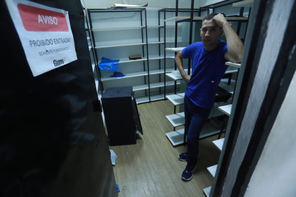 “O dono do prédio me ligou falando que invadiram minha loja. Corri até lá e me deparei com essa situação, nunca imaginei que iriam conseguir acessar o cofre”, conta Tiago.