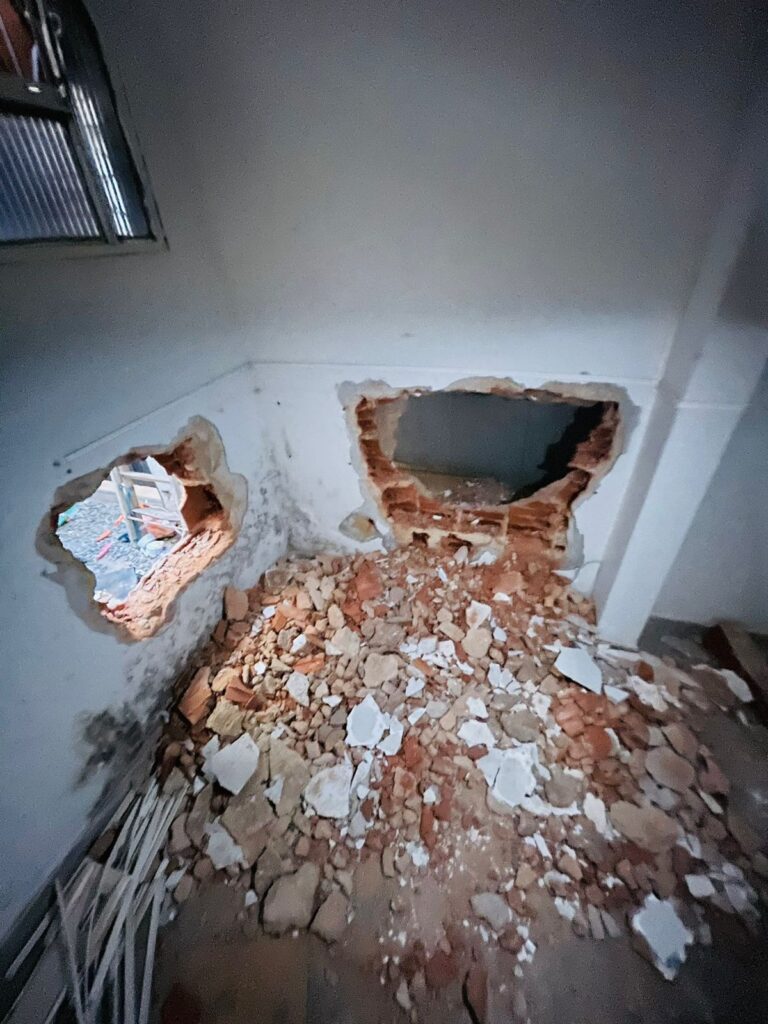 O Jornal de Brasília entrou no estabelecimento furtado acompanhado com o empresário. É notável que o arrombamento foi feito por especialistas, pois nem as ferramentas do crime estavam na loja e o recorte na parede era visivelmente linear. Tiago ainda revelou que os peritos da Polícia Civil do Distrito Federal (PCDF) falaram, informalmente, que os criminosos possivelmente estavam usando luvas, pois não havia vestígios de digitais.