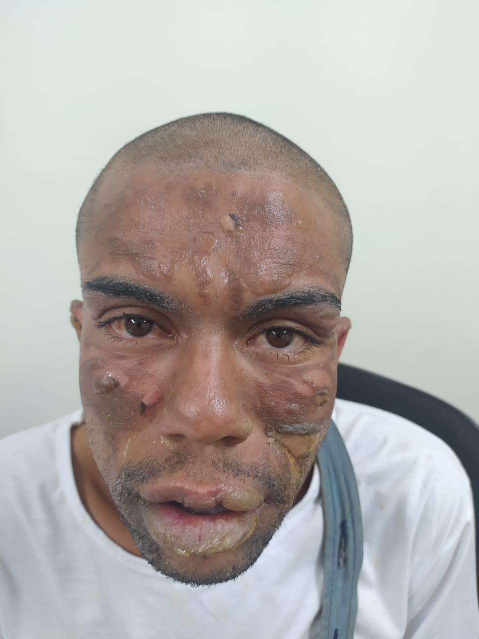 Na madrugada desta terça foi surpreendido por seu desafeto que jogou gasolina e ateou fogo. Levantou rapidamente e usou o cobertor para apagar o fogo.
