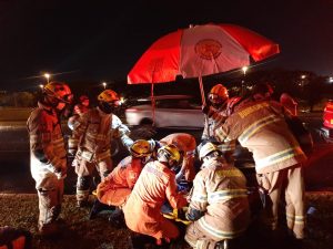 Um motociclista e sua passageira sofreram um acidente na noite desta terça-feira (20), na Asa Norte. De acordo com o Corpo de Bombeiros do Distrito Federal (CBMDF), as vítimas tiveram ferimentos leves, e foram levados para o Hospital de Base.