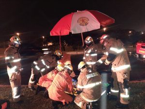 Um motociclista e sua passageira sofreram um acidente na noite desta terça-feira (20), na Asa Norte. De acordo com o Corpo de Bombeiros do Distrito Federal (CBMDF), as vítimas tiveram ferimentos leves, e foram levados para o Hospital de Base.