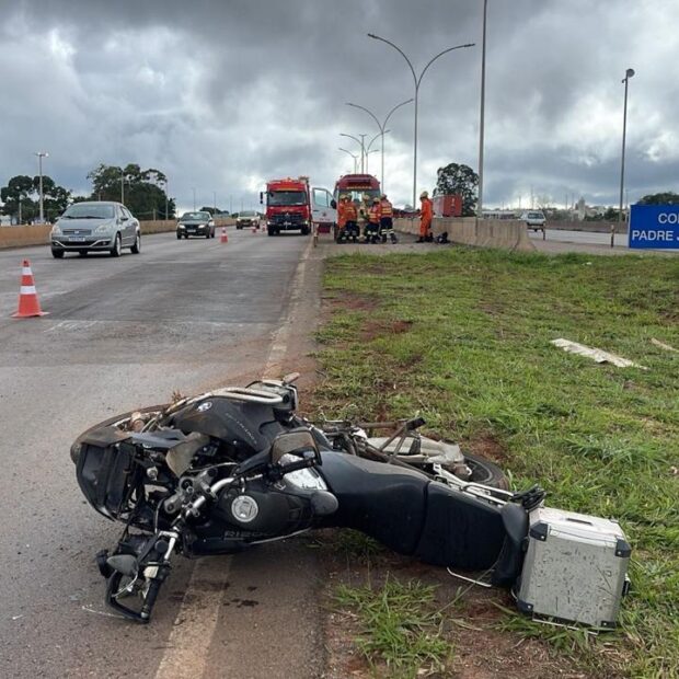 Um motociclista ficou ferido após um acidente na manhã desta sexta-feira (27), na BR-020, no viaduto de acesso a Sobradinho, no sentido Plano Piloto, no Distrito Federal.