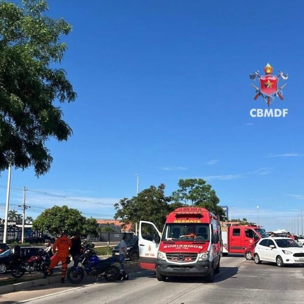 Uma colisão envolvendo uma motocicleta e um carro deixou um homem ferido na manhã desta terça-feira (18/11/2025), em Vicente Pires, no Distrito Federal. O Corpo de Bombeiros Militar do DF (CBMDF) foi acionado por volta das 8h20 e deslocou duas viaturas para o atendimento.