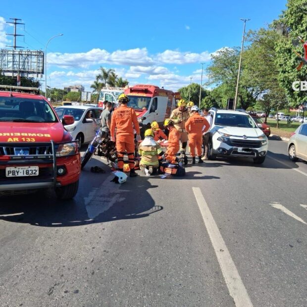 O Corpo de Bombeiros Militar do Distrito Federal (CBMDF) atendeu, às 15h27 desta quinta-feira (23/10/2025), a uma colisão entre uma Fiat Toro branca e uma motocicleta vermelha na SGCVS, EPIA Sul, nas proximidades de um shopping do Guará.