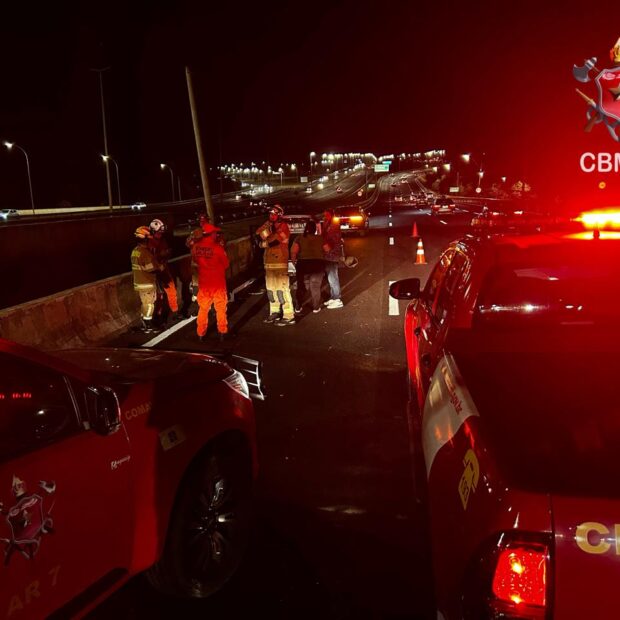 O Corpo de Bombeiros Militar do Distrito Federal (CBMDF) atendeu, na noite de sábado (7), a uma colisão entre um carro e uma motocicleta na via marginal da Ponte do Bragueto, sentido Lago Norte.